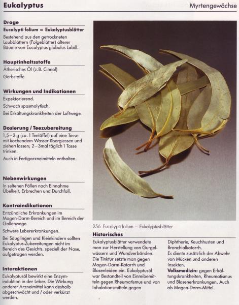 Eucalyptus globulus bewirkt eine Enzyminduktion in der Leber, daher kann die Wirkung anderer Arzneimittel dadurch abgeschwächt und oder verkürzt werden. Kann Urtikaria auslösen.