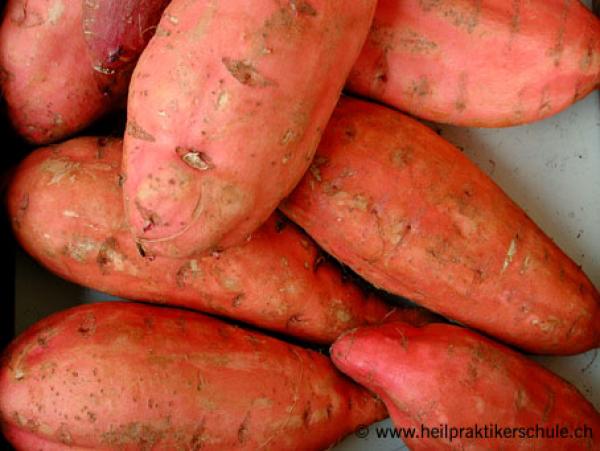 Kurzatmigkeit, Säftemangel, Durst (roh), Anorexie, Magersucht, Gewichtsverlust, Auszehrung (gekocht), Unruhe (roh), Haut trocken, Schleimhauttrockenheit, Anämie, Blutmangel, Laktationsmangel, Milchbildungsmangel, Stillzeit, Nachtblindheit (Süsskartoffelsuppe), Arteriosklerose-Prophylaxe, Schlaganfall, Apoplex, Hypertonie, Bluthochdruck, Krebs-Prophylaxe, Obstipation, Verstopfung trocken, Stuhl hart